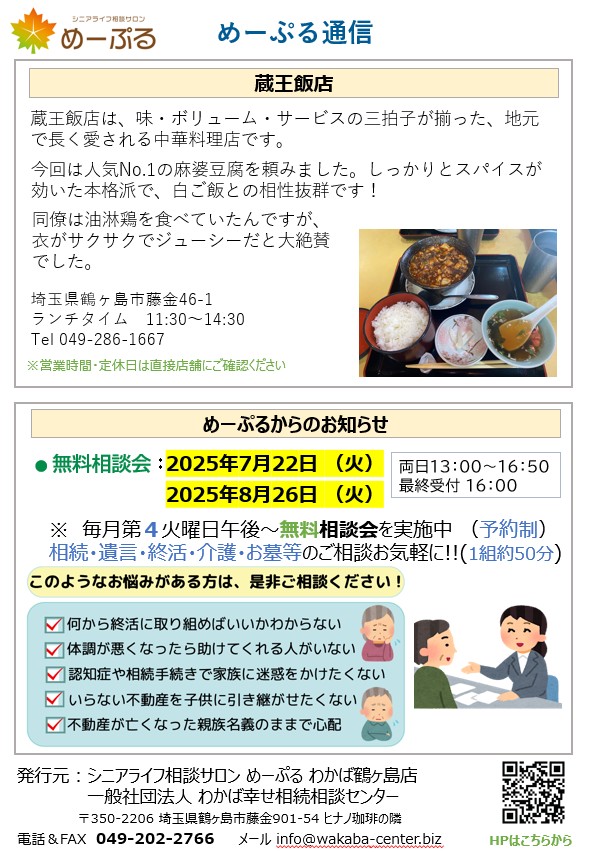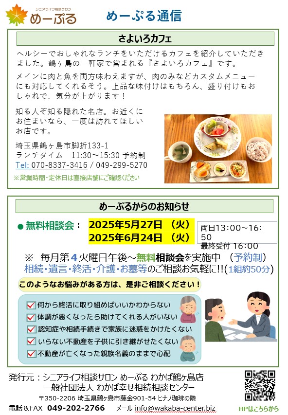 シニアライフ相談サロン めーぷる わかば鶴ヶ島店